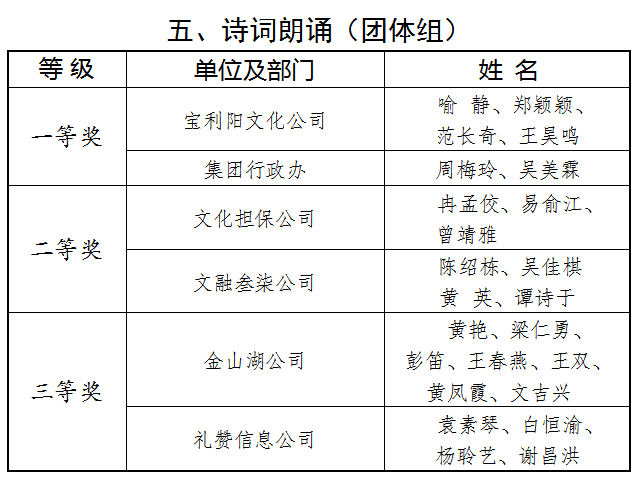 市作家协会副主席蒋登科、市书法家协会副主席李文岗、重庆电视台知名主持人薛焱丹作为此次比赛的专家评审进行专项评选,最后按照“诗词原创内容类(古风组)”、“诗词原创内容类(新诗组)”、“诗词书写类(毛笔组)”、“诗词书写类(硬笔组)”、“诗词朗诵(团体组)”、“诗词朗诵(个人组)”六大类评出各类奖项。评委蒋登科先生认为:“此次征集的原创类诗歌作品立足新时代的特殊语境,立足国家发展大局,围绕文化企业发展,抒写作者对国家的深爱,对企业的信心,对未来的展望,格调向上,情感真挚,体现了企业及其员工在企业文化建设方面的同心同向,深层次表达了作者对未来发展的信心。这样的活动对于凝聚人心、建构同心协力的文化氛围、提升员工的文化品位、养成企业的文化精神,必将发挥独特的引领作用。”李文岗先生评价:“从参赛的书法作品能看出集团干部职工学习书法的路径是正确的,表达方式有传统文化的规矩规范,又具备思想情感、审美情趣等内在精神的时代性,这是让人感到非常高兴的事情。”薛焱丹女士表示:“集团的朗诵爱好者精心准备作品及挑选配乐,选材涵盖经典古诗词、建党百年、文投项目等,充分感受到了文投人朝气蓬勃的精神面貌,希望大家新一年能再创文投新辉煌!”