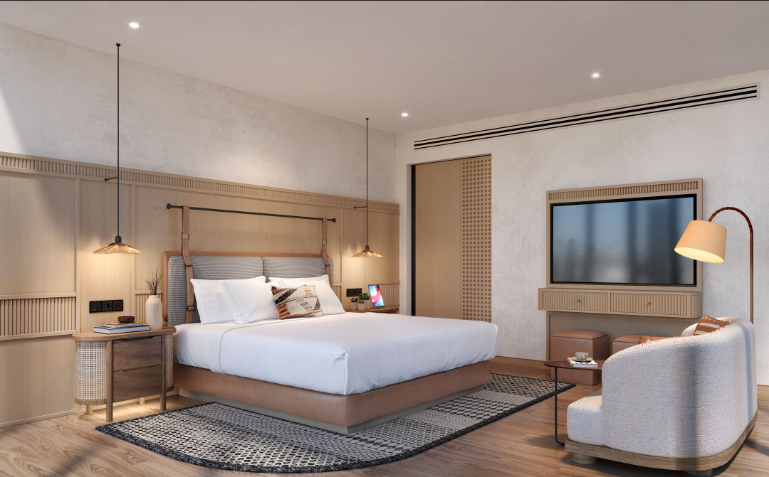 “仙山里”酷客部落酒店总投资超7亿元人民币,占地约48亩、建筑面积约5万㎡、客房数185间、床位数266张,其建筑设计由国际知名建筑设计事务所——香港贝诺(Benoy)担纲,室内装饰装修设计则由世界知名室内设计公司HBA(洛杉矶团队)与国内知名室内设计公司苏州金螳螂集团(上市公司)联合担纲。除客房外,“仙山里”酷客部落配备了1个全日制餐厅Cantina、1个活力酒吧Captain Cook Bar、1间以“新世代游乐&体育”为主题的餐饮娱乐派对空间CC Combo、500平米无柱式宴会厅,建成投用后将为新世代旅行者提供更丰富多元的娱乐度假体验,也将极大丰富仙女山国家级旅游度假区的产业业态,并成为武隆旅游国际化对外展示的窗口和标杆。