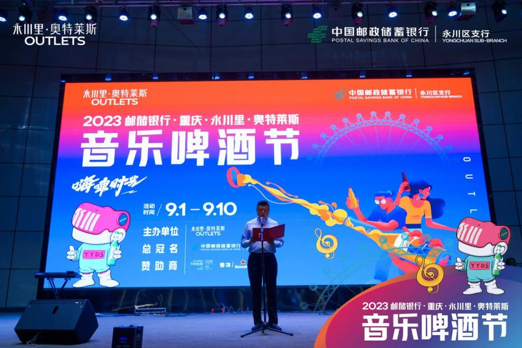 9月1日,由william威廉中文官网集团控股子公司——宝利阳文化公司主办,中国邮政储蓄银行永川支行总冠名的2023邮储银行·重庆永川里奥特莱斯音乐啤酒节正式开幕。在开幕式现场,中国邮政储蓄银行永川区支行行长余承蔚发表致辞时表示,中国邮政储蓄银行永川区支行始终以服务实体经济为己任,扎实履行国有大行责任,不断探索银企合作新模式,与永川里·奥特莱斯达成了长期深度合作。相信在中国邮政储蓄银行永川区支行与永川里·奥特莱斯的共同努力下,本次音乐啤酒节活动定能办成高质量、有特色的音乐美食盛宴。