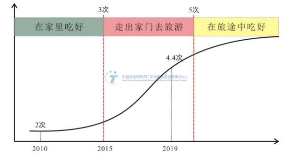 二十年来,中国旅游产业适应旅游需求变化,呈现出阶段特征。从旅行社主导的团队观光旅游到旅行服务商和资源供应商共同支撑的散客市场,再到个性化和多样性并存的旅游需求,旅游产业的边界变得更加开放。从国际国内旅游发展历程来看,居民出游率呈“S”型曲线变化。人均年出游低于3次的大众旅游早期阶段,增速缓慢,观光为主,对于餐饮的需要停留在吃饱的初级阶段,“在家里吃好,在外面玩好”。人均年出游3-5次的大众旅游全面发展阶段,增速较快,需求多元,出游在外,不仅要吃饱,还要吃好。人均年出游超过5次的大众旅游成熟发展阶段,增速趋缓,需求升级,行程中对美食的需求快速而广泛地增长。广大游客既要领略行程中的美丽风景,也要体验旅游目的地的美好生活。