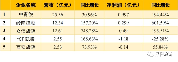 据5家上市旅行社的财报数据,在营收方面,排名前三的中青旅(600138)、岭南控股(000524)、众信旅游(002707)均超过了10亿元,远超*ST凯撒(000796)和西安旅游(000610)。其中,中青旅(600138)成为了盈利王,众信旅游(002707)的营收同比增长748.28%。