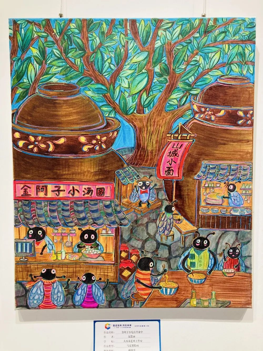 当天,“IP·创未来”2023重庆艺术版权季作品展开展,艺术的光芒为寒冬岁末的鹅岭公园增添了一抹缤纷亮色。这些重庆孩子完成的绘画作品,用色大胆,想象奇特,正是本次重庆艺术版权季作品展的一大亮点。
