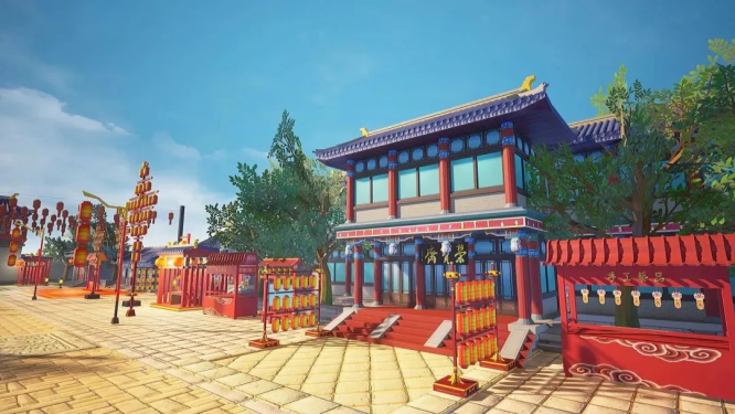 此次元宇宙产品突破低面数风格,采用元宇宙仿真建模、AO贴图、法线烘焙等多项复合技术,一比一复刻多个文化场景,展现了齐鲁大地浓浓的年味。